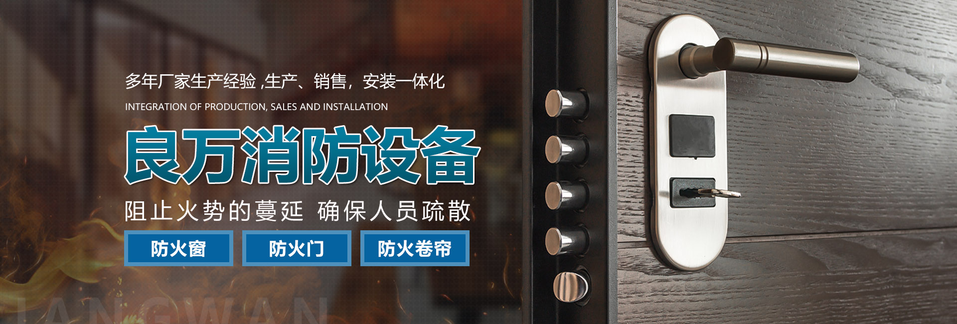 關(guān)于我們合肥良萬消防設(shè)備有限公司位于合肥市包河工業(yè)園,生產(chǎn)銷售安裝:防火門、防火卷簾門、防火窗等消防安全產(chǎn)品。公司具有研發(fā)、設(shè)計、生產(chǎn)、銷售、及安裝服務(wù)的綜合配套能力。合肥良萬消防設(shè)備有限公司技術(shù)力量強(qiáng),設(shè)備齊全,產(chǎn)品不斷創(chuàng)新,以信譽(yù)立業(yè),客戶滿意是我們永無止境的追求。我們在保證產(chǎn)品質(zhì)量的同時,也十分注重售后服務(wù),保證消防安全產(chǎn)品的正常運(yùn)行。公司始終堅持誠信為本的企業(yè)宗旨,真誠希望與社會各界新老客戶精誠合作,良萬愿與您攜手共創(chuàng)輝煌!